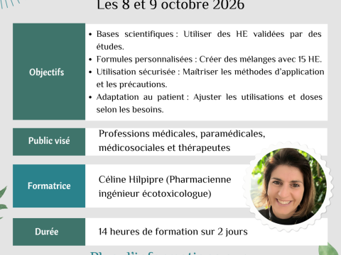 Cette rubrique est dédiée aux formations à l’usage médical des huiles essentielles. Découvrez nos stages consacrés à l’emploi des huiles essentielles dans leur usage médical.